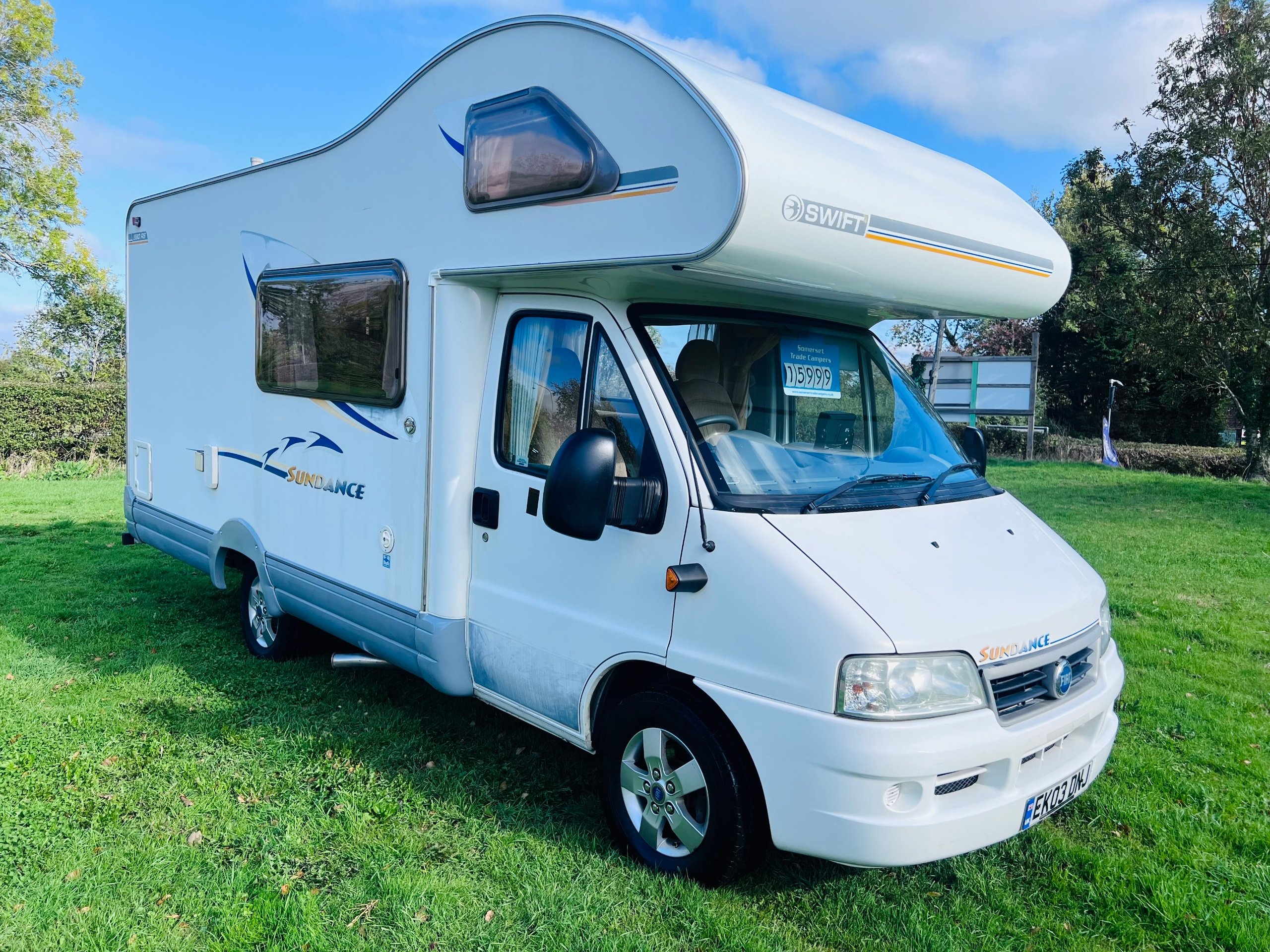For sale is a 2003 Swift Sundance 590RS motorhome with just 44000 miles on the clock. Powered by a reliable diesel engine, this 5-berth vehicle comes with a valid MOT until 01/10/2026. Can be driven on car licence with a gross weight of 3300kg, this motorhome is spacious and comfortable for all your travel needs. It also comes equipped with alloy wheels, rear belts, solar panel, and a reversing camera, providing convenience and safety on the road. The vehicle also comes with a full service history, ensuring its reliability and excellent condition. Don't miss out on the opportunity to own this well-maintained motorhome for all your future adventures. Supplied with a New habitation check and a Comprehensive warranty. Part exchange welcome. Car caravan camper. No finance open everyday. Located BS246se